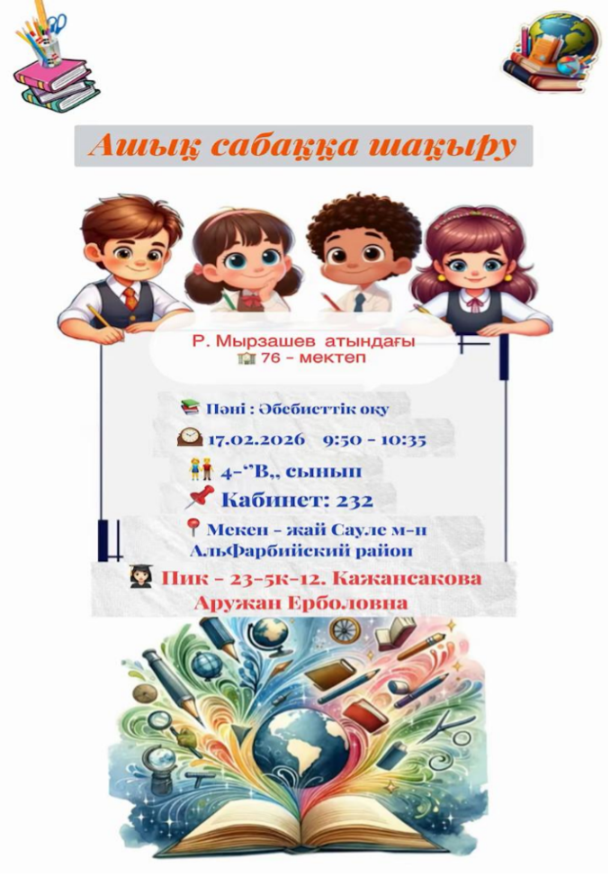 An open lesson on “Literary Reading” was conducted in Grade 4 “B” at School No. 76 named after R. Myrzashayev.