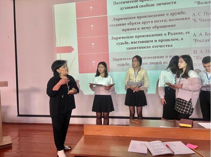 Сабақтың тақырыбы – «XIX ғасырдағы орыс әдебиеті және оның көрнекті өкілдері». Сабақ барысында XIX ғасырдың орыс әдебиеті тарихындағы «алтын ғасыр» кезеңі ретінде маңызы жан-жақты түсіндірілді. Бұл дәуірде әдебиетте реализм бағыты қалыптасып, адам жанының терең психологиясын бейнелеу кеңінен дамығаны атап өтілді.