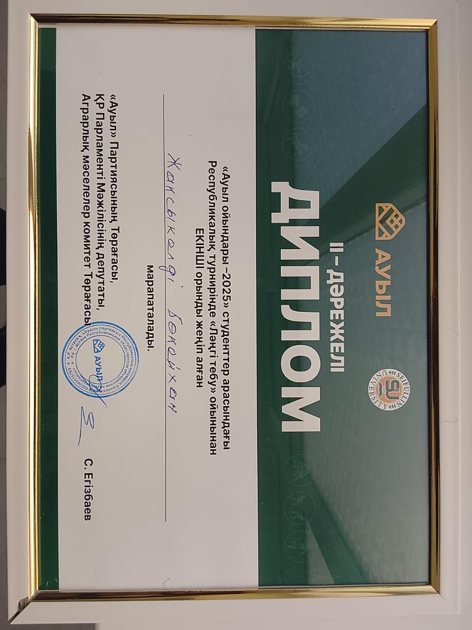 В Республиканском турнире «Сельские игры -2025» среди студентов по национальному виду «пенание Лянги» студент ФК-23-1к4 университета имени Ж. А. Ташенева Жаксыкелды Бокейхан занял 2-е место.