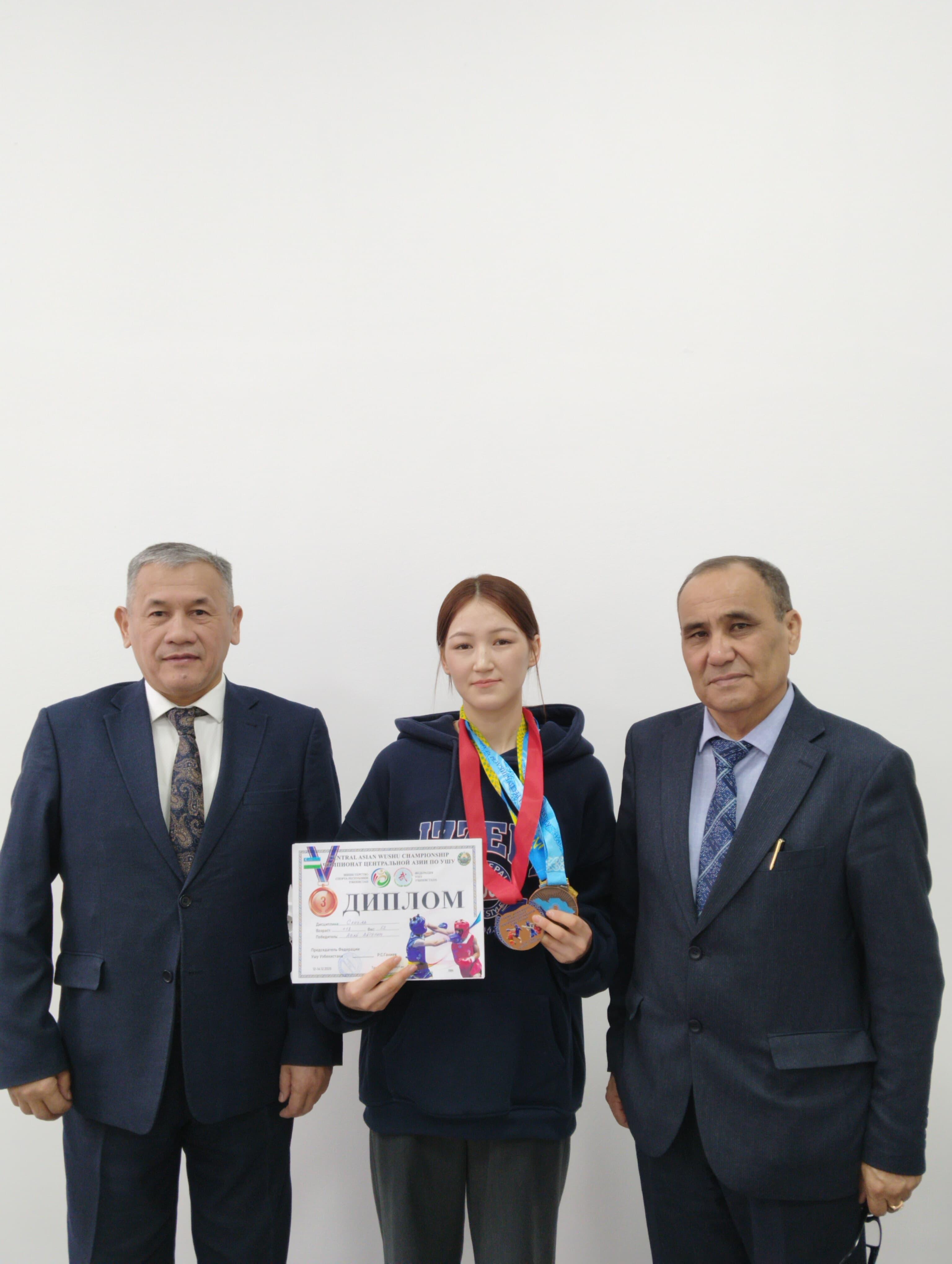 Студентка 2 курса факультета культуры и спорта нашего университета, группы ФК-24-1к5 — Абай Айгерим, выступая в дисциплине ушу саньда в весовой категории до 52 кг, заняла почётное 3 место.