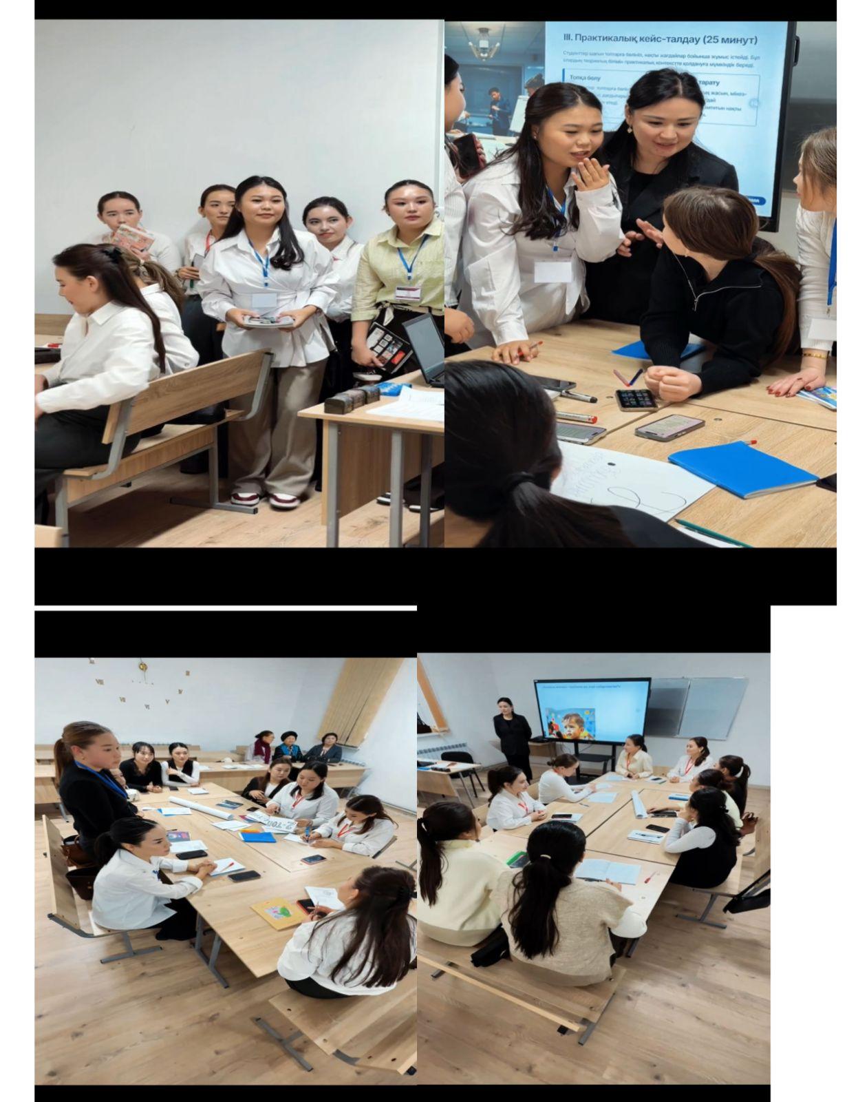 18 декабря 2025 года на открытом занятии присутствовала кандидат педагогических наук, доцент кафедры Койшыбаева Н.И. Магистр педагогических наук, преподаватель кафедры Керимбек Акерке Асемовна провела открытое занятие по дисциплине «Психология дошкольного и младшего школьного возраста» на тему «Особенности психологического развития детей дошкольного возраста» со студентами 2 курса групп ПИК 24-5к3, ПИК 24-5к7, ПИК 24-5к9.
