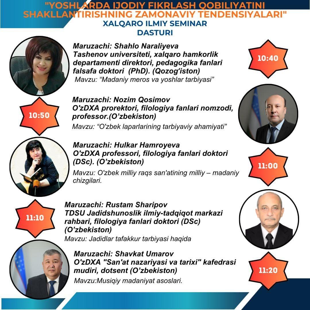 27 ноября 2025 года в Самарканде состоялся важный международный научный семинар (с возможностью дистанционного участия). Мероприятие было посвящено теме «Современные тенденции в формировании навыков творческого мышления у молодежи».