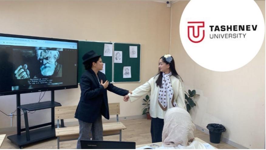 ФИ 23-2р тобының 3-курс студенттері XIX ғасырдағы орыс әдебиетіне арналған сабақ-концертті ұсынды. Шығармашылық қойылым форматында XIX ғасыр классиктері — Крылов, Пушкин, Лермонтов, Грибоедов, Гоголь және Толстойдың шығармалары бойынша мысалдар, поэтикалық туындылар, монологтар мен сахналық көріністер орындалды.