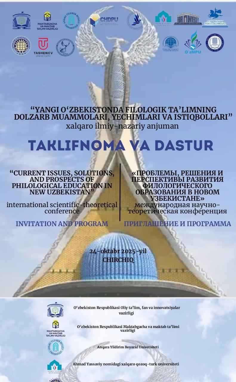 24 қазан 2025 жылы Өзбекстан Республикасының Шыршық қаласындағы Шыршық мемлекеттік педагогикалық университетінде «Жаңа Өзбекстанда филологиялық білім берудің өзекті мәселелері, шешімдері және болашағы» атты халықаралық ғылыми-теориялық конференция өтті.