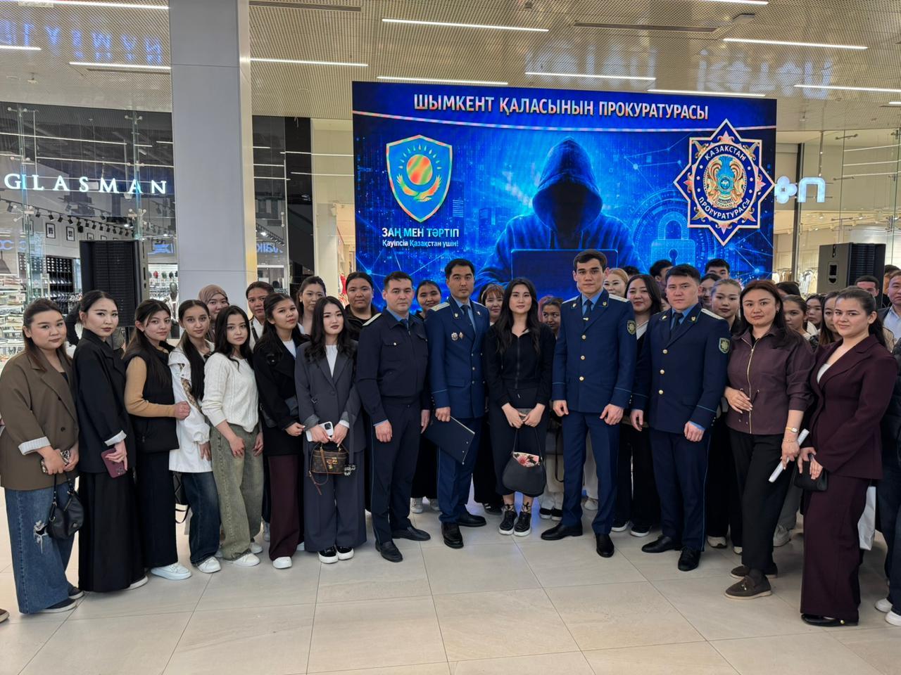 07.04.2026 күні «Заң мен Тәртіп» қағидаты аясында қала прокуратурасының үйлестіруімен Shymkent Plaza сауда үйінде өткен «Кибернадзор» іс-шарасы студенттер үшін өте маңызды танымдық әрі тәрбиелік мәнге ие болды.