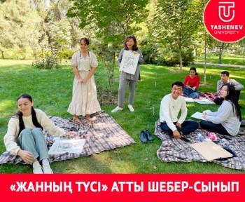 Факультет «Начальное образование и искусство», кафедра «Искусство и музыка» университета Ж. А. Ташенева 10 сентября 2024 года в парке культуры и отдыха Металлург города Шымкент прошла мастер-класс по теме «Цвет души», организованный первокурсниками образовательной программы музыкального образования креатором, искусствоведом, доктором РһD, старшим преподавателем кафедры Есеновой Ханзада Азимхановной проведен мастер-класс. С целью выявления специфики восприятия музыки студентами были разработаны тренинговые упражнения. Казахский национальный инструмент кобыз озвучил мелодию на белом листе бумаги и раскрасил ее выбранным им цветом, что дало характеристику личности каждого студента и было публично обсуждено. Для студентов это был уникальный тренинг. Мастер - класс получился очень интересным. Студенты проанализировали свои картины, вдохновленные их инстинктами.