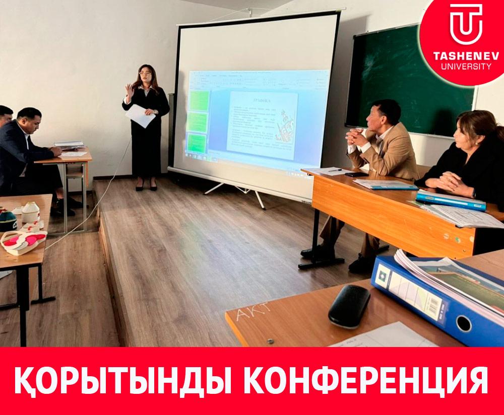 На итоговой конференции выступил декан факультета Лесбек Алипулы, с докладом выступили руководители практики. Отчет студентов был дифференцирован, а их работа оценивалась методистами. Были высказаны мнения по практическим документам. В докладе показаны преимущества и трудности организации активного преподавания и обучения, организации социально-педагогического процесса в школах, результаты использования заданий, дифференцированных с учетом индивидуальных потребностей учащегося, и направления дальнейшего развития. Студенты смогли рационально сочетать теоретические знания с практикой, смогли продемонстрировать свои знания, умения и навыки на высоком уровне.