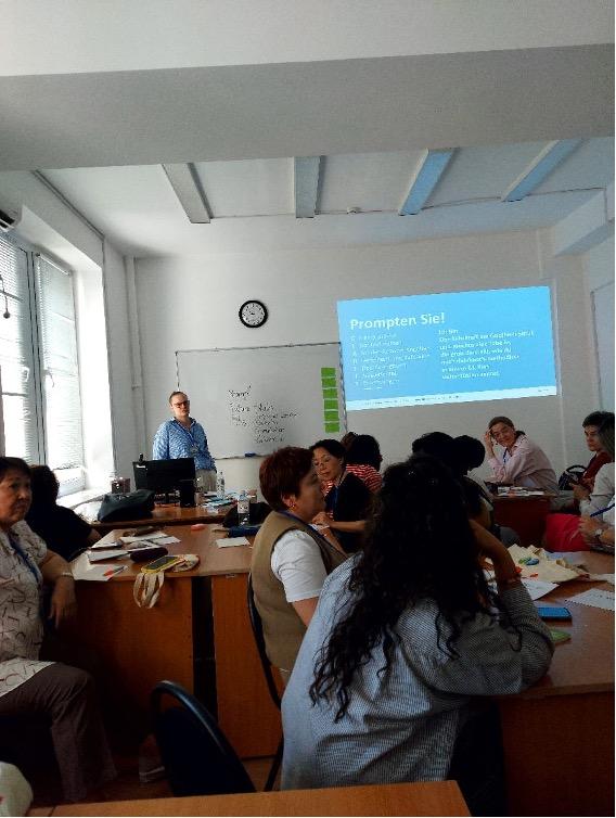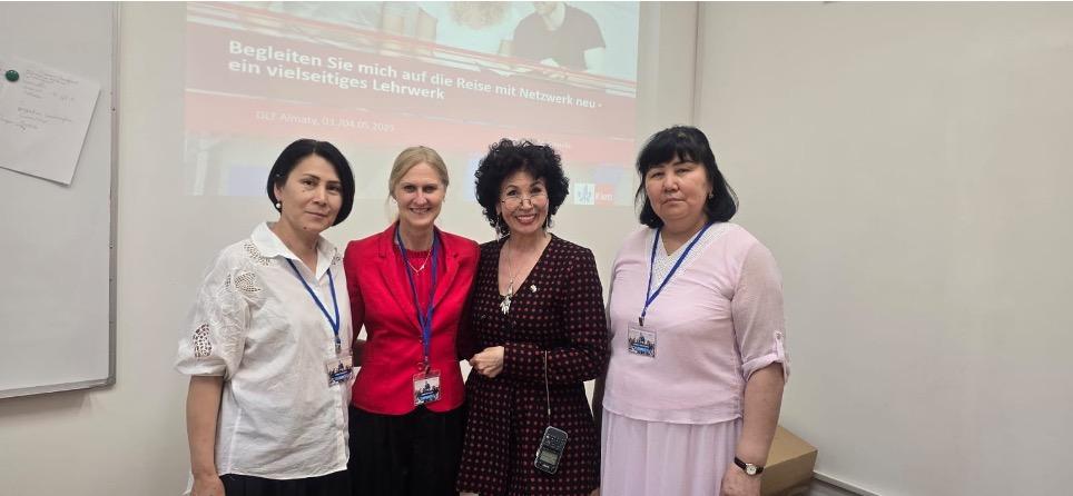 В Шымкенте состоялся образовательный семинар с участием заместителя президента Ассоциации учителей Германии Махажановой Д.И. и представителя Гёте-Института в Алматы. Мероприятие было организовано с целью расширения знаний студентов о значении немецкого языка в современном образовательном и профессиональном пространстве, а также ознакомления с перспективами академического и карьерного роста, связанными с его изучением.
