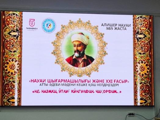 6 февраля в Университете имени Жумабека Ташенева совместно с узбекским этнокультурным объединением города Шымкент среди учащихся 10–11 классов общеобразовательных средних школ и студентов высших учебных заведений прошел литературно-культурный вечер «Творчество Навои и XXI век».