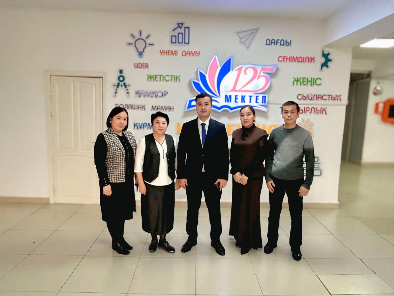 В школе №125 руководство факультета встретилось с директором школы Альжановой Газизой Кенбаевной и заместителем директора по учебной работе Жораевой Загипой Рысбековной, где была отмечена важность педагогической практики. В ходе встречи также обсуждались вопросы дальнейшего сотрудничества и совместных планов.
