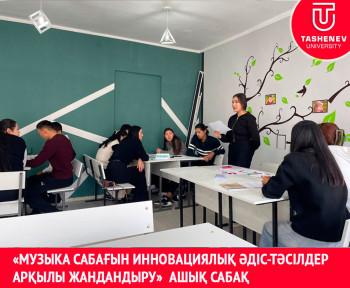 11.11.2024 күні «Ж.А.Тәшенев атындағы университеті» АҚ «Спорт және өнер» факультеті «Саз және ән» кафедрасының ҚР мәдениет қайраткері, магистрант, аға оқытушы Қайнарбаева Айгүл Қалмаханқызы кезектен тыс Гагарин көшесі-22 корпусында ПиК-24-4к 1-курс студенттерімен бірге «Домбыра-І» пәні бойынша «Музыка сабағын инновациялық әдіс-тәсілдер арқылы жандандыру» атты тақырыпта ашық сабақ өтті. Ашық сабақ өте қызықты ірі тартымды болды. Оқытушы сабақты бастамас бұрын топты үш топқа бөлді. Ұландар, Гәкку және Махамбет. Сабақ барысы 7-тренд бойынша жүргізілді.