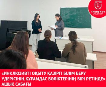 14.03.2025ж. күні «Мектепке дейінгі оқыту және психология» кафедрасының магистр, оқытушысы Жапсар Арайлым Асқарбекқызы «Инклюзивті білім беру» пәні бойынша ПиК-23-5к1 тобымен «Инклюзивті оқыту қазіргі білім беру үдерісінің құрамдас бөліктерінің бірі ретінде» атты тақырыбында студенттермен ашық сабақ өткізді. Сабақ барысында студнттер инклюзивті оқытудың мәні, мақсаты және қағидаттары туралы сонымен қатар ерекше білім беруді қажет ететін адамдармен қарым-қатынаста ашықтық, құрмет және қолдау көрсету дағдыларын қалыптастырды. Студенттер болашақ маман ретінде инклюзивті ортада жұмыс істеудің әдістері мен тәсілдерін үйренді. Ашық сабан нәтижесінде студенттер инклюзивті оқыту саласында теориялық және практикалық білім алып, болашақта оны кәсіби қызметінде қолдануға дайын болды.