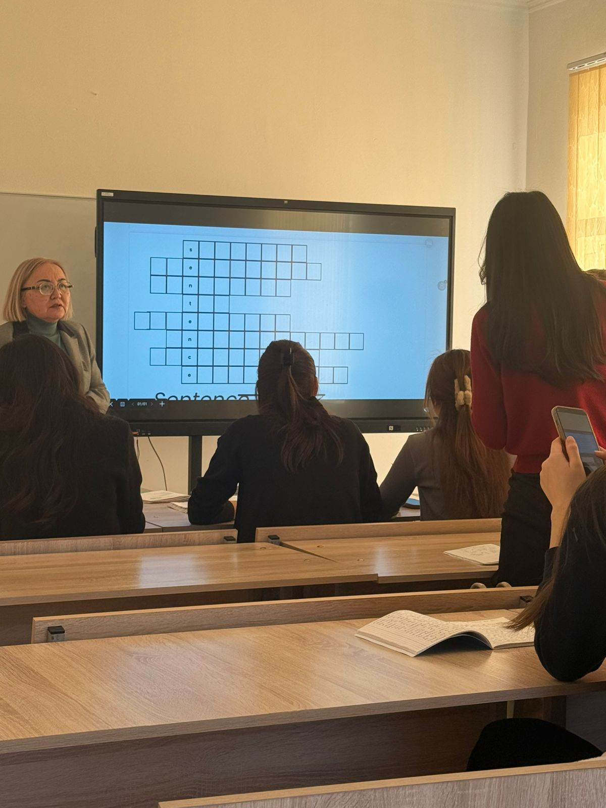 During the lesson, students actively participated in all activities: they discussed theoretical issues, engaged in group and individual work, and completed various exercises to develop their grammatical and communicative skills.