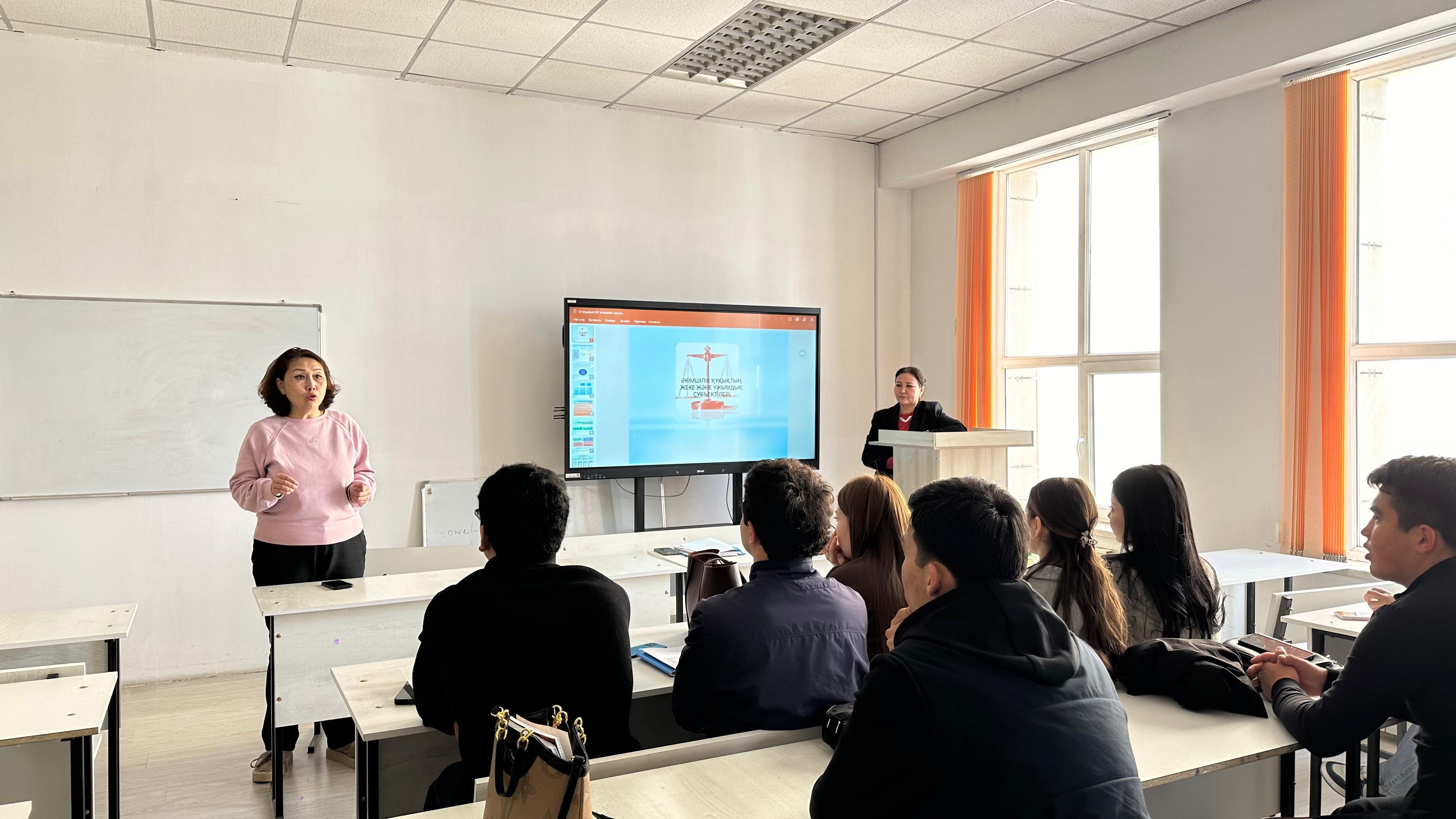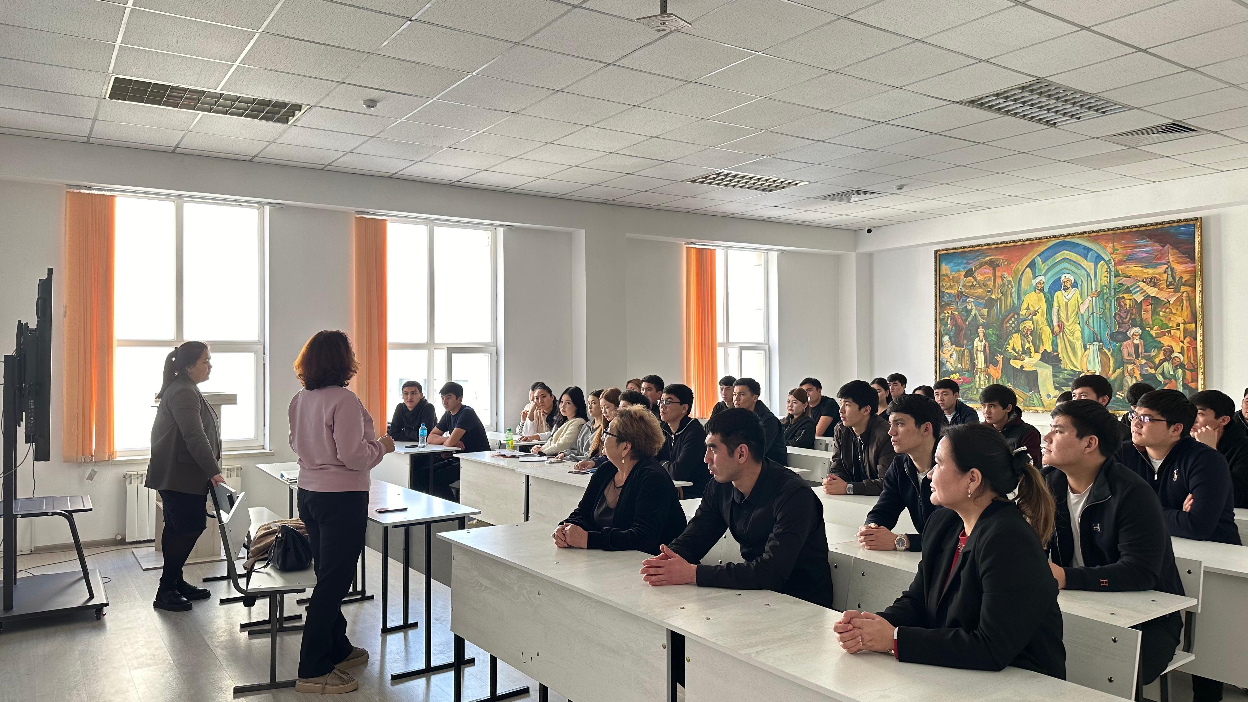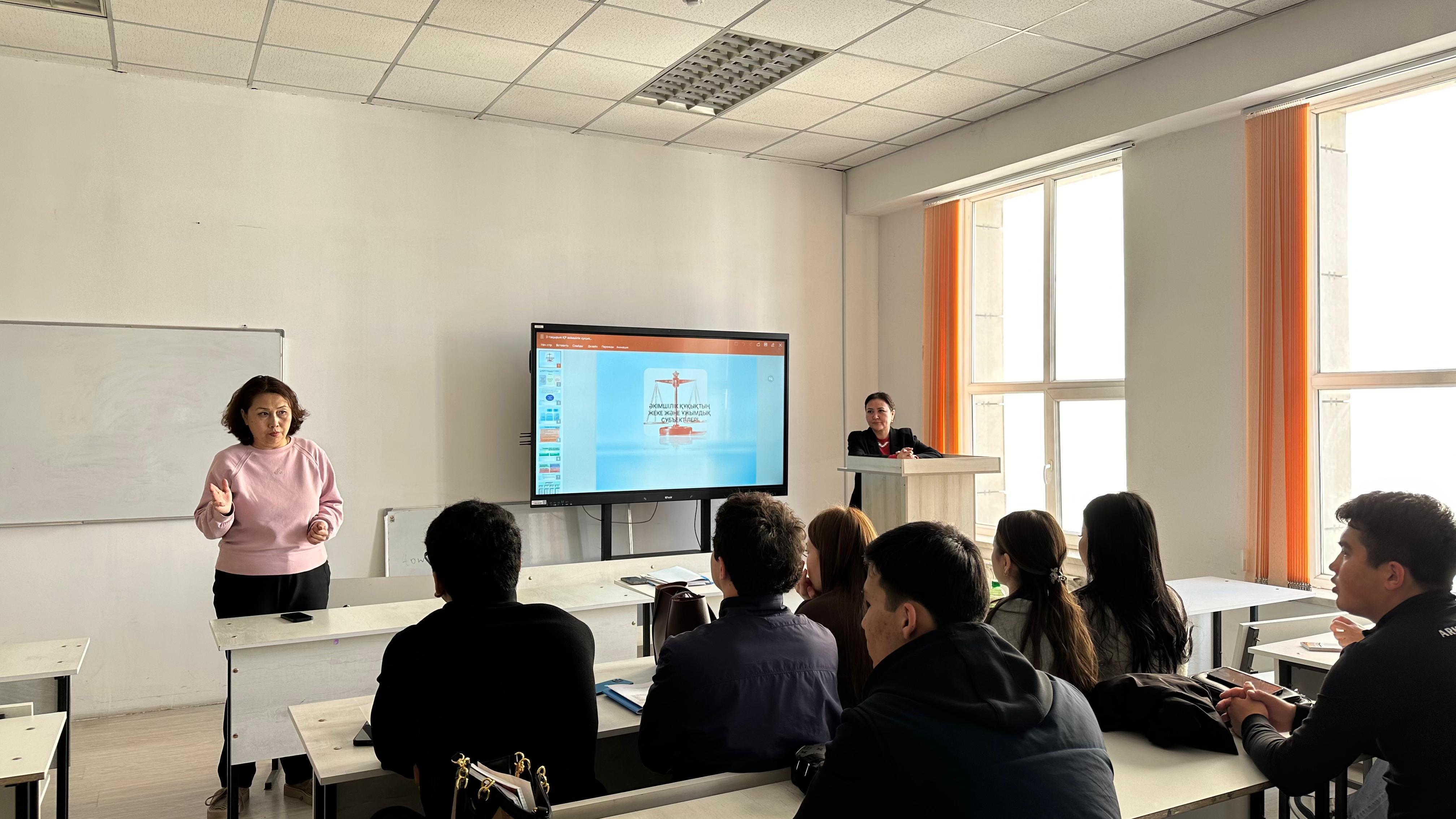On February 17, 2026, in Room 414, a meeting was held with third- and fourth-year students of the 6B04201 – “Jurisprudence” program, organized by the Department of Law. The guest speaker was Zh. Alzhanova, Chief Specialist of the Department of the Agency of the Republic of Kazakhstan for Civil Service Affairs in the city of Shymkent. The event was organized with the aim of promoting a positive image of the civil service and attracting talented young professionals in the Republic of Kazakhstan.