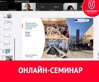 «Ж.А.Тәшенев атындағы университеті» АҚ «Педагогикалық және жаратылыстану ғылымдары» факультеті «Математика және информатика» кафедрасының ұйымдастыруымен 17.03.2025 ж. күні Zoom платформасында «Қазіргі кездегі дуалды оқыту жүйесінің мәселелері және қолдану тәжірибесі» тақырыбында онлайн-семинар өтілді.
