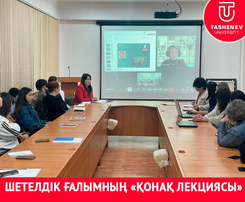 Жұмабек Тәшенев атындағы университет ректоры, т.ғ.к., профессор Қанат Сейітжанұлы Байболовтың алғы сөзінен кейін магистранттар шетелдік ғалымның дәрісін тыңдап, сауалдарын қойып, жоғары оқу орнында ағылшын тілін оқытудың практикалық аспектісін талқылады.