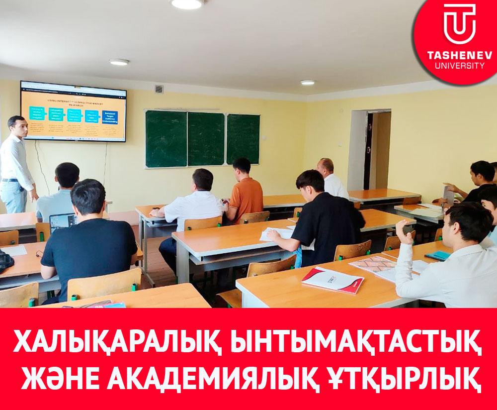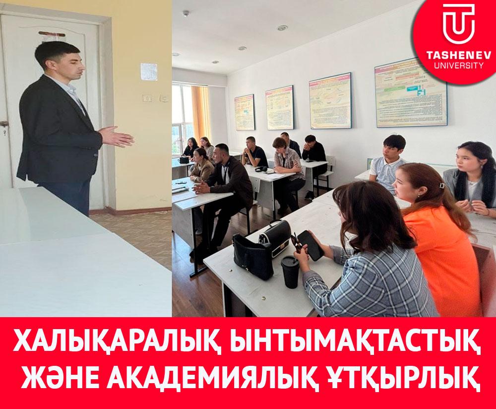 Халықаралық ынтымақтастық және академиялық ұтқырлық шеңберінде 2024 жылдың 13 мамырдан 15 мамырға дейін профессорлық-оқытушылар құрамына және 6В04103- «Экономика», 6В04102- «Қаржы», 6В04101- «Есеп және аудит», 6В04104- «IT-менеджмент» және 7М04104- «Экономика» білім беру бағдарламаларының магистранттары мен студенттеріне, Өзбекістан Республикасы Наманган инженерлік-технологиялық институтынан «Экономика» және «Бухгалтерлік есеп және қаржы» кафедрасының өкілдері Махмудов Тахиржон Олимжонович - э.ғ.д., профессор және Собиров Отабек Олимжонович – э .ғ. к., доцент дәріс оқыды.