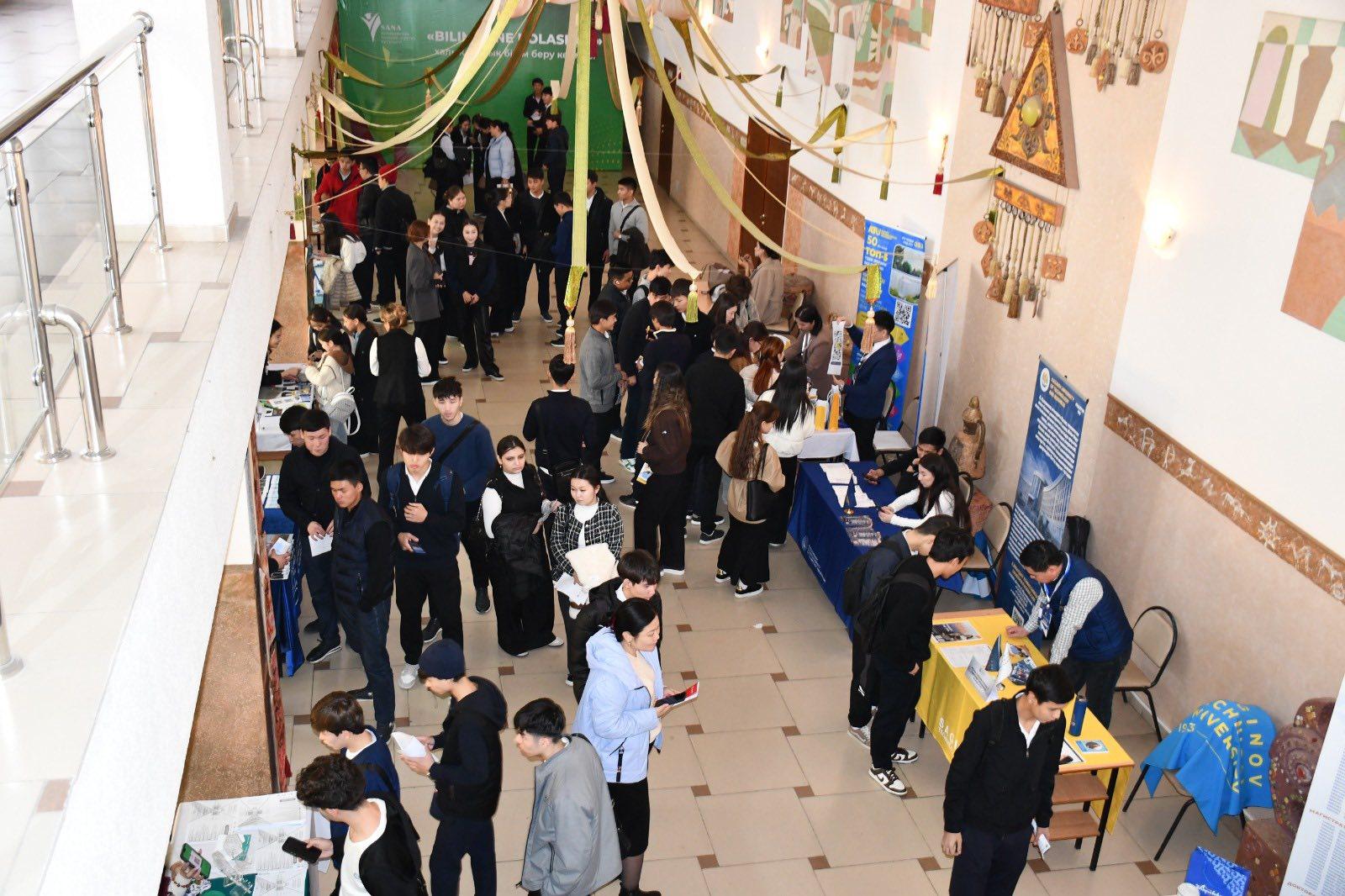 «Корпорация «SANA OIL» АҚ-ның қолдауымен «SANA» Халықаралық ғылыми-зерттеу орталығы» ЖШС ұйымдастыруымен талапкерлерге болашақ мамандықтарын таңдауға жәрдемдесу мақсатында «BILIM JÁNE BOLASHAQ» халықаралық білім беру көрмесі өтті.