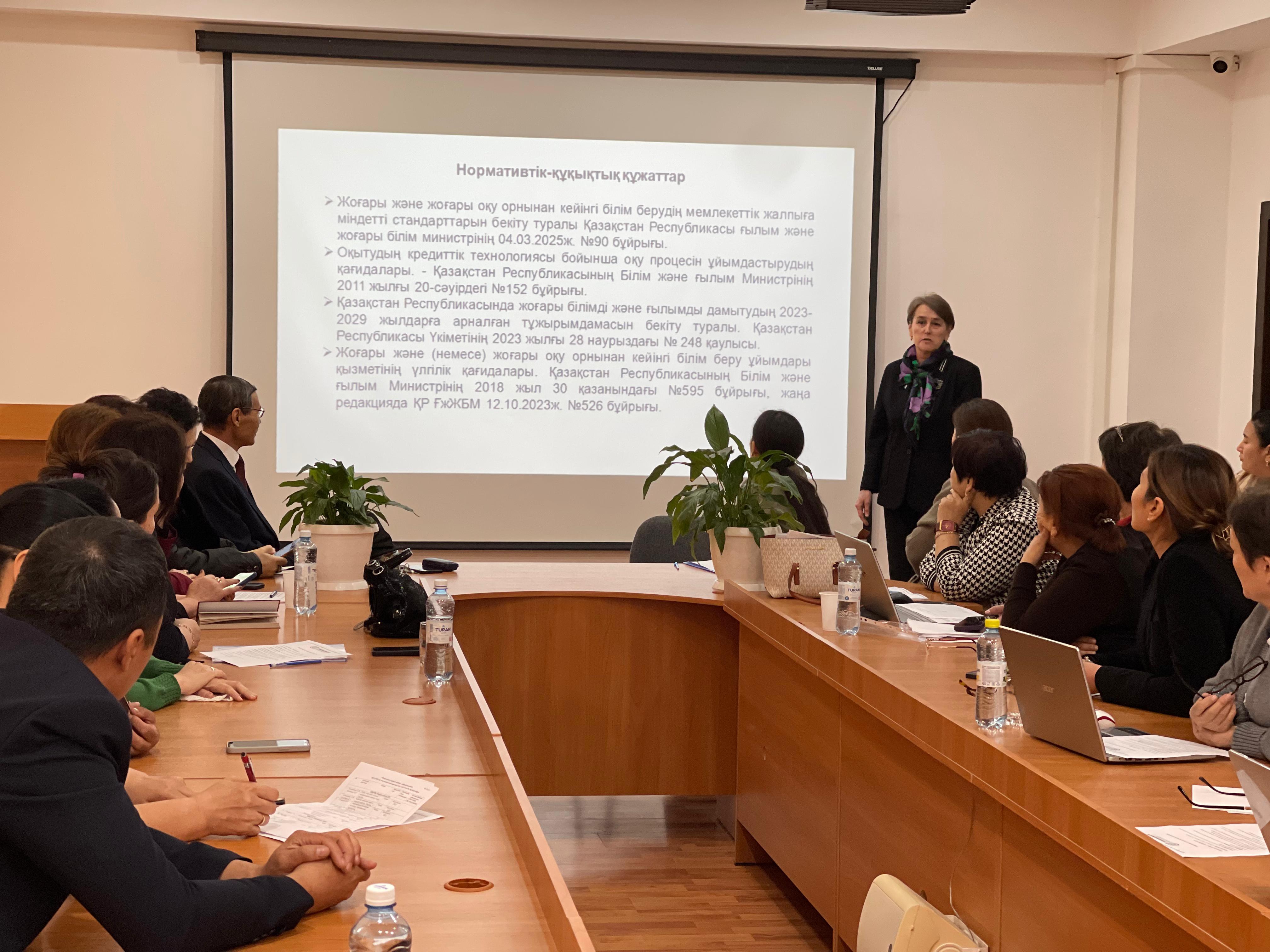 Білім беру бағдарламаларының оқу-әдістемелік кешенін әзірлеудің инновациялық тәсілдері мен негізгі мәселелері талқыланып, өзара тәжірибе алмасу мен пікір-сайыс орын алды.