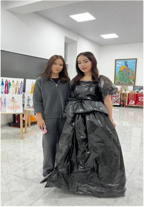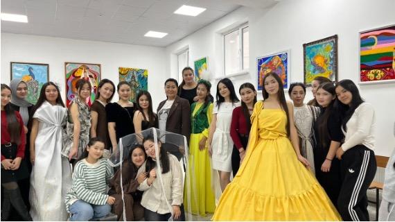 2025 жылғы 17 желтоқсанда «Өнер және көркем еңбек» кафедрасының тәлімгері Калабаева Қызбала Райымбекқызының ұйымдастыруымен ПиК 24-1к2, ПиК 24-14к2, ПиК 24-14к3 топ студенттері арасында «Композиция негіздері» пәнінен қорытынды сабақ өтті. Пән бағдарламасында қарастырылған 15 тақырып аясында студенттер 15 түрлі көйлек композициясын ұсынды. Сабақ барысында костюм құрамының негізгі заңдылықтары, композициялық қалыптасу мен үйлестіру әдістері, түстің композициялық құрал ретіндегі маңызы және басқа да теориялық мәселелер қамтылды. «Композиция негіздері» пәнін оқытудың мақсаты – студенттердің кәсіби білімін, іскерлігі мен дағдыларын қалыптастыру, шығармашылық ойлау қабілетін дамыту. Сонымен қатар білім алушылар сән мен стиль бағыттарын терең меңгеріп, жаңа үлгілер мен киім топтамаларын әзірлеу үдерісінің негізгі шығармашылық қағидаларын нақты түсіне білуі тиіс. Топтарға бөлінген студенттер мата, қағаз, газет, пластик және түрлі қаптама материалдарын пайдалана отырып, ерекше көйлек үлгілерін дайындады. Қорытынды бөлімде дефиле ұйымдастырылып, қатысушылар көпшілік алдында сәнді қимылмен жүріп өтіп, өз тақырыптарына сәйкес әзірлеген композициялық жұмыстарын қорғады.Аталған іс-шара студенттердің пәнге деген қызығушылығын арттырып, шығармашылық ізденістеріне серпін берді деп сенеміз.