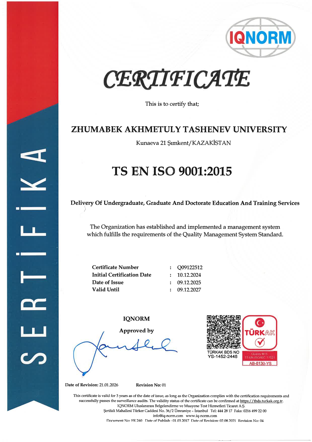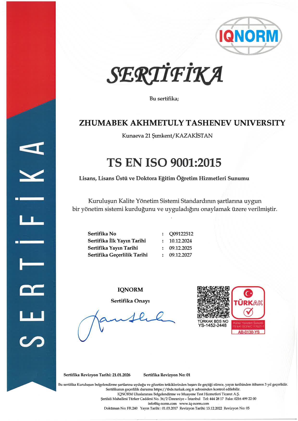 Білім беру сапасын қамтамасыз етудің ішкі жүйесінің тетіктері мен құралдарын сипаттайтын құжат.