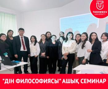 05 декабря старший преподаватель, магистр кафедры "История и география" Кожабеков Нуржигит Абубакирович, со студентами 2 курса групп 23-5к, 12,13 специальности 6В01301- Педагогика и методика начального обучения" провел открытый семинар на тему «Философия религии».