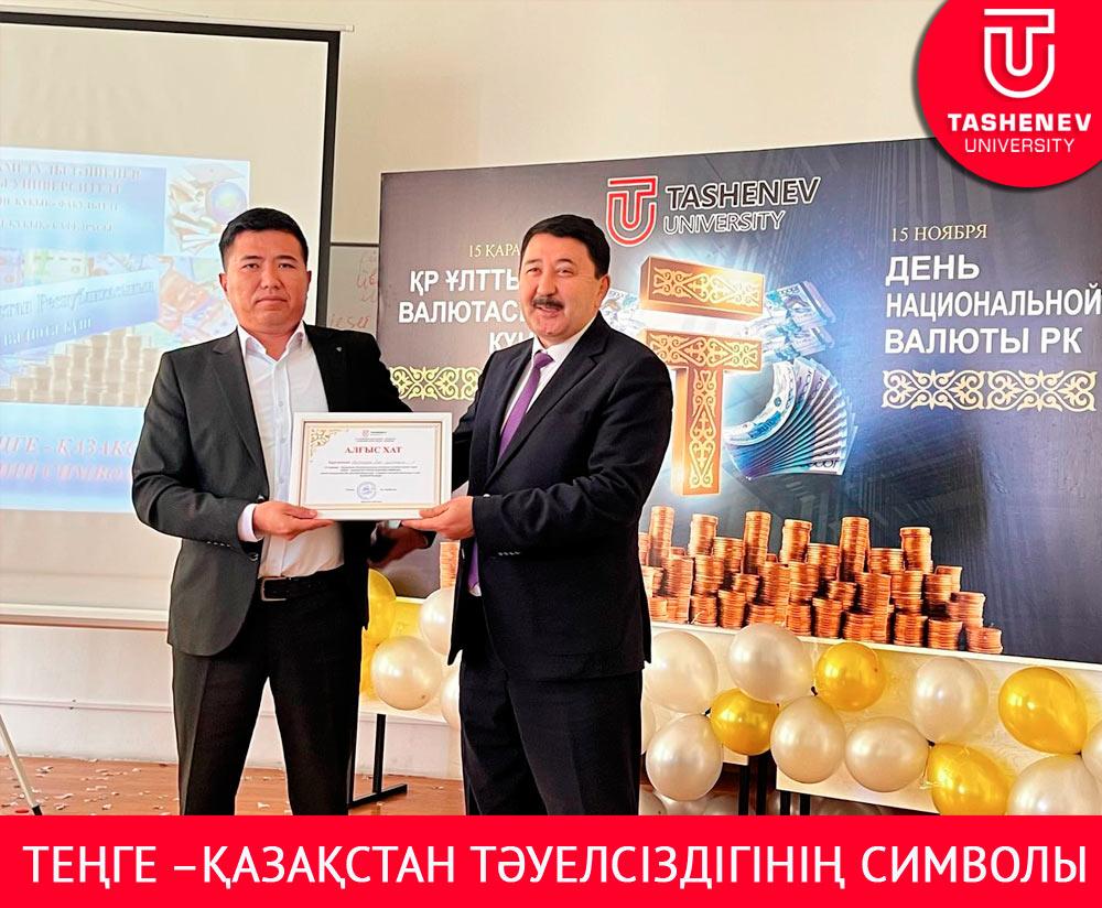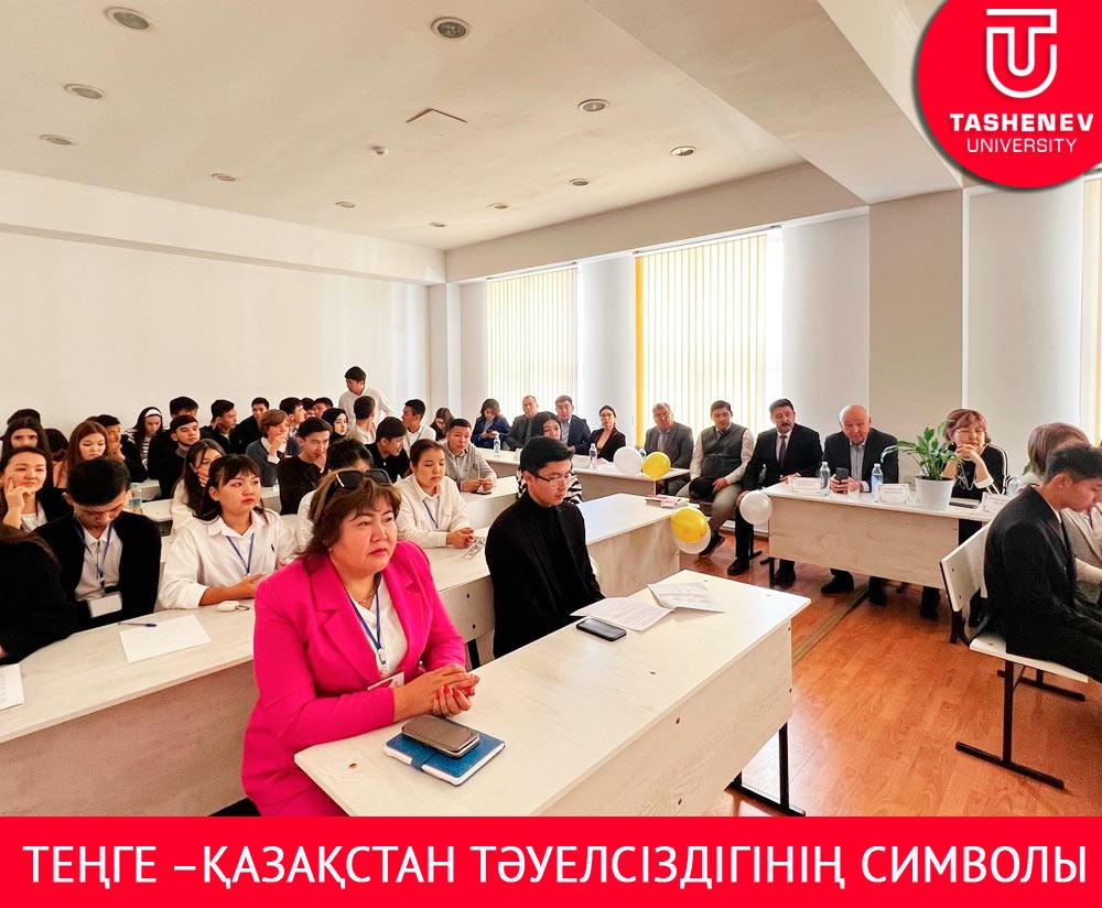 В связи с этим сегодня при организации кафедры «Экономика и право» было организовано торжественное собрание под названием «ТЕНГЕ – СИМВОЛ НЕЗАВИСИМОСТИ КАЗАХСТАНА».