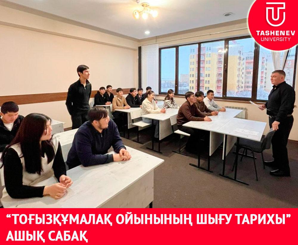 05.12.2024 г. магистр кафедры «Теория и методика физического воспитания» факультета «Искусство и спорт», старший преподаватель А.Р. Юсупов с группами студентов ФК - 21-1к1, 2, 3, 4, 5, 6, 7, 8 провел открытое занятие в форме информационной лекции по предмету Тогызкумалак на тему «История игры Тогызкумалак». Преподаватели кафедры приняли участие в занятии и высоко оценили, что преподаватель полностью освещал на уроке теоретическую часть новой темы и имел тесный контакт со студентами.