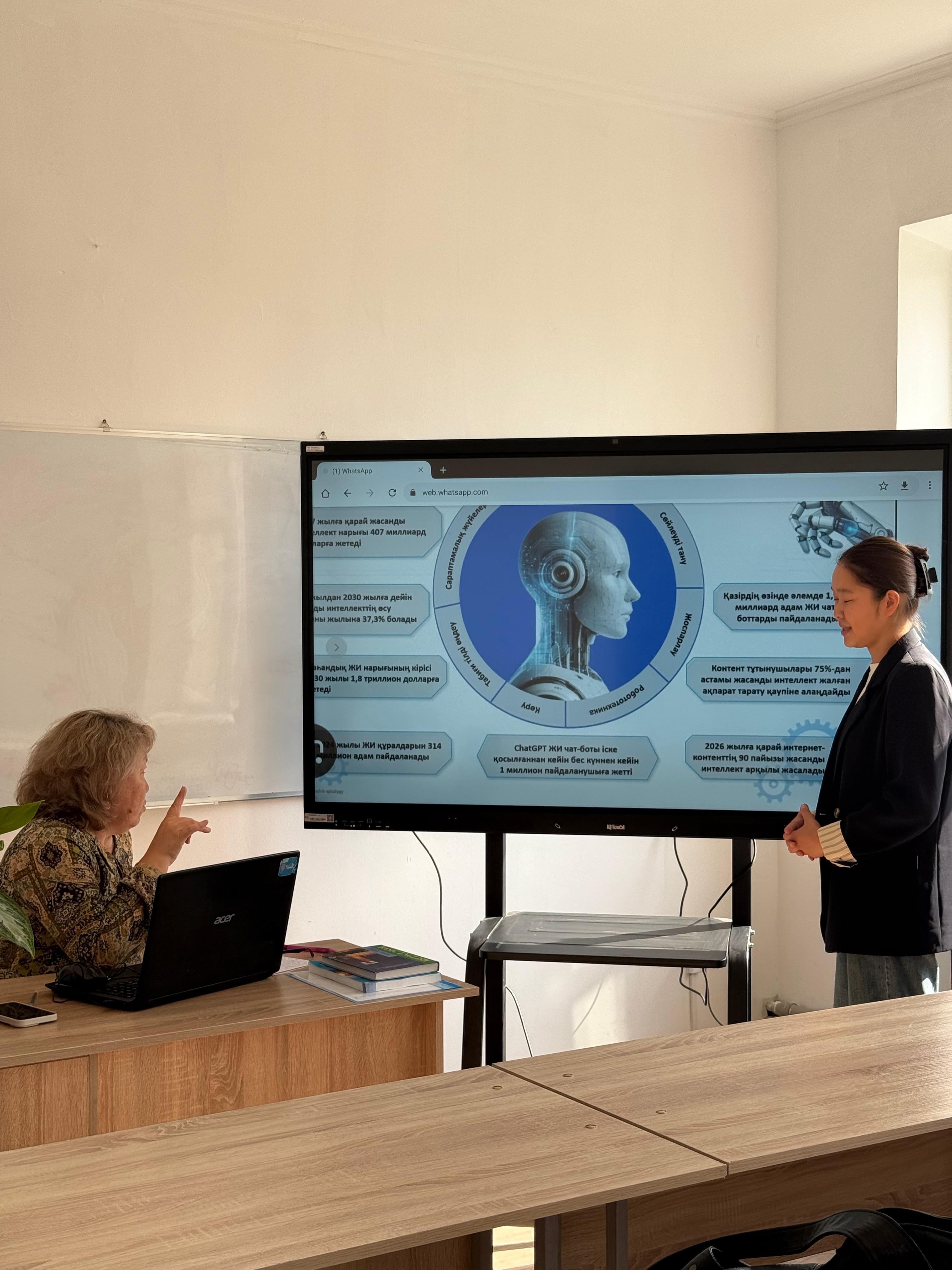 В составе исследовательской группы, наряду с преподавателями кафедры, активно принимает участие студентка 3 курса образовательной программы 6В01703 – Подготовка учителей иностранного языка: двух иностранных языков — Сапарбай Клара.