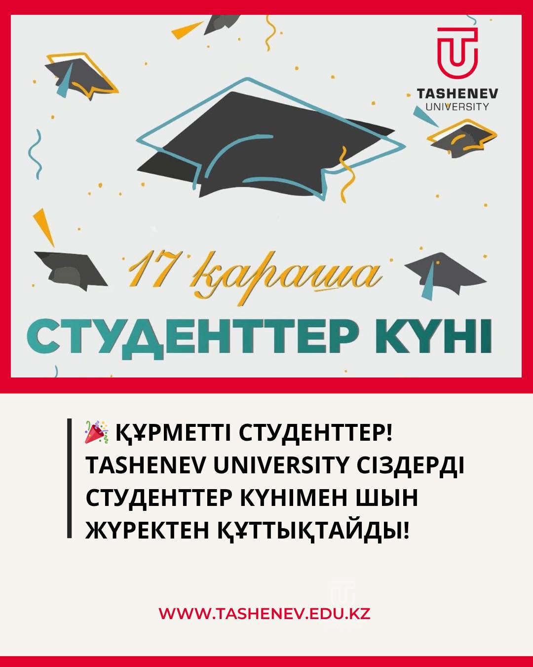 Медиатека / Новости / Дорогие студенты! Tashenev University сердечно поздравляет вас с Днём студентов!