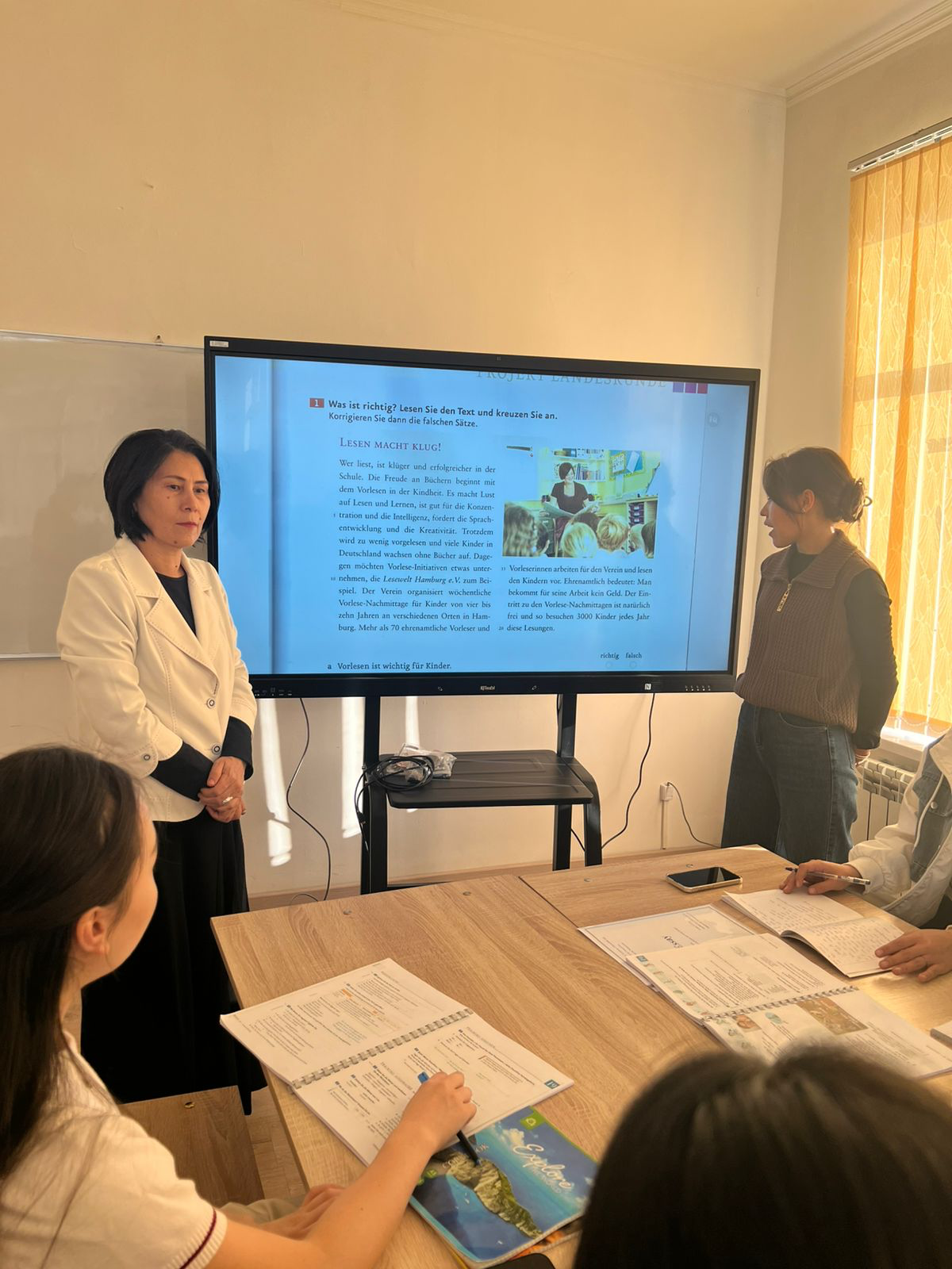 15 октября 2025 года в 14:30 в аудитории 107 под руководством старшего преподавателя кафедры «Мировые языки» Т.Ж. Турсуновой состоялся открытый урок на тему «Was alles zum Sport gehört» с участием студентов группы ФИ-24-9к4.